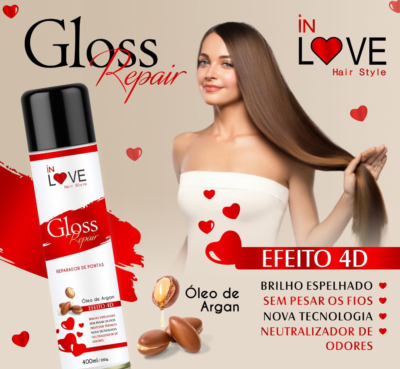 Gloss aerosol , é um argan com neutralizador de odores , perfume capilar e termoprotetor tudo isto em um unico produto de 400 ml aerosol